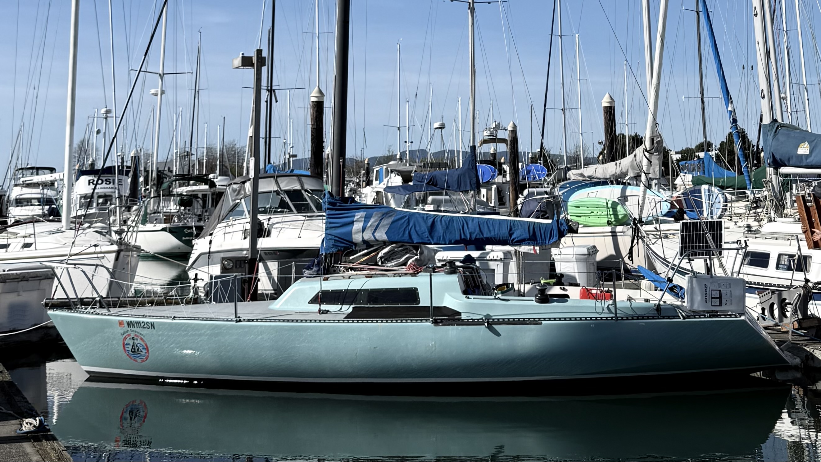 Rescued from a cow pasture in central Oregon in 2017, Wild Card, a Santa Cruz 27, was transformed into a racing vessel for the 2018 R2AK under the team name Wild Card. The crew removed and replaced damaged and rotting deck coring, replaced rigging, installed electronics, and generally brought her back to life. She completed the R2AK again in 2024 and the WA360 in 2025. Equipped with five sails and upgraded solar power system, battery storage and electronics she’s in great shape but there’s still work and repairs to complete in preparation for June 2026. If boats could talk, she could regale us with some salty sea tales.